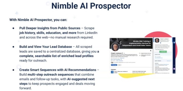 In addition to Nimble CRM, I also offer sales training and training on LinkedIn as well as getting started with AI (Artificial Intelligence). I can even assist with hiring new salespeople with initial interviews and pre-hire DISC personality assessments.